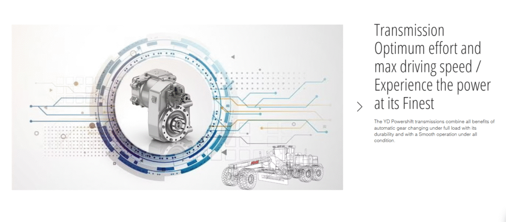 The robotically welded frame helps to ensure structural rigidity while the rear frame design protects the power train from load and stress created by side and rear attachments, such as rippers and scarifiers. The structural design of the grader helps the grader to achieve the maximum blade down force and drawbar pull rates. To match the grader performance with tractive conditions the operator can lock or unlock the differential with simple operator friendly mechanism.