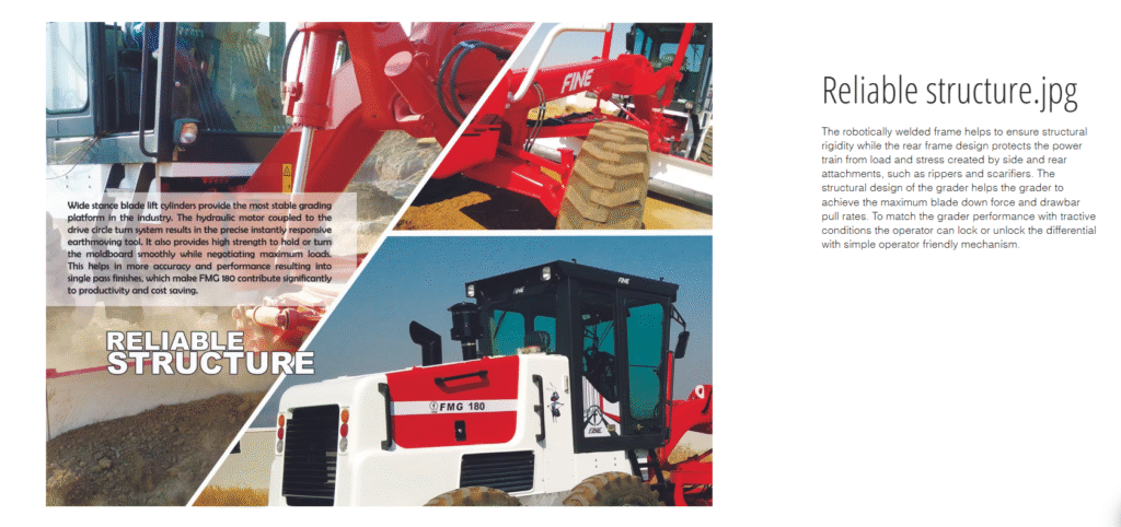 Fine Equipments with extensive customer feedback has introduced the motor grader FMG180 to meet the needs and demands of the growing infrastructure industry in the nation. The FINE FMG180 is designed to combine the attributes of productivity, operator friendliness, reliability and ease of service in a quality package.